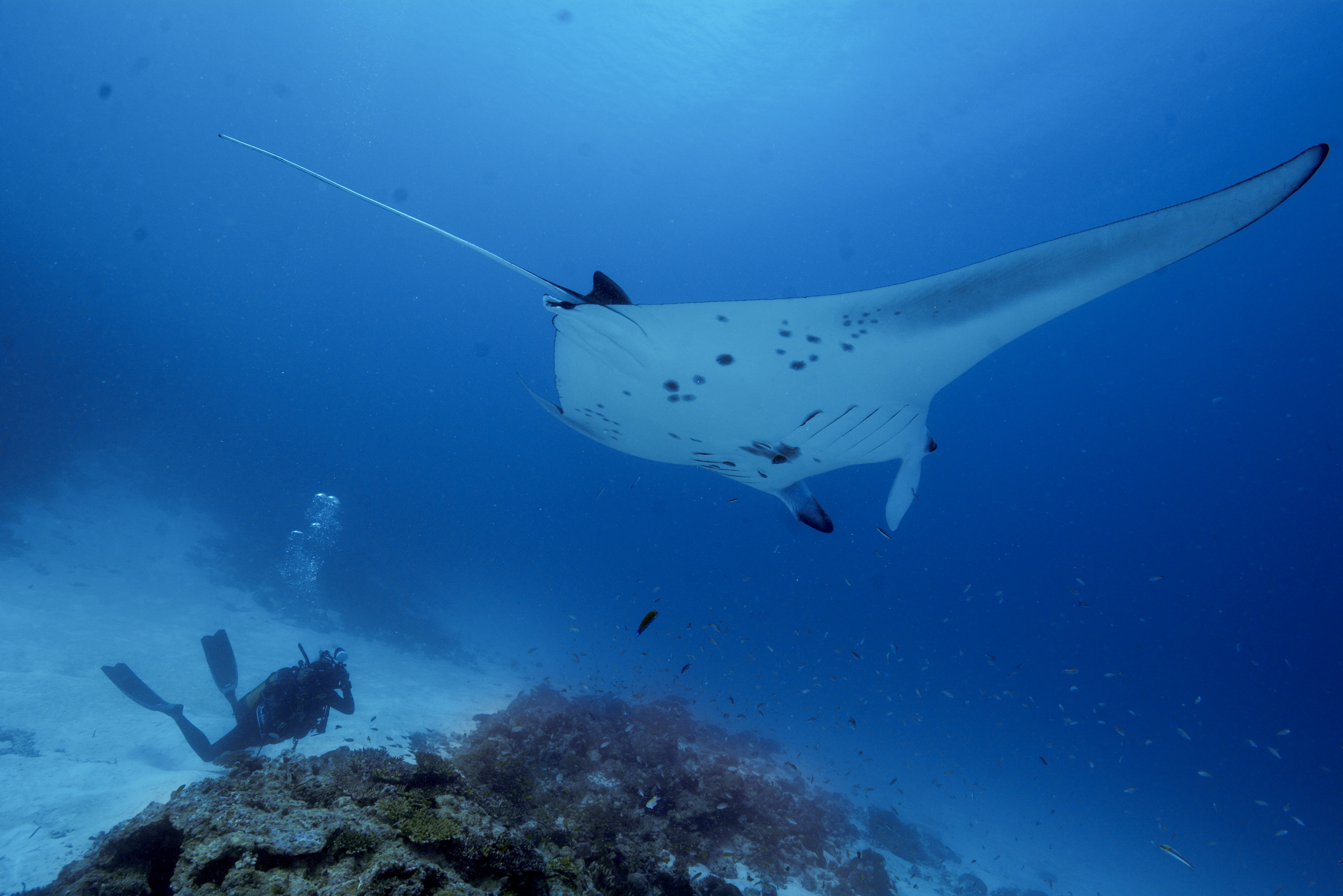 Dillys photographs Tom the manta ray at the cleaning station. Photo by Henriette Grimmel | © Save Our Seas Foundation