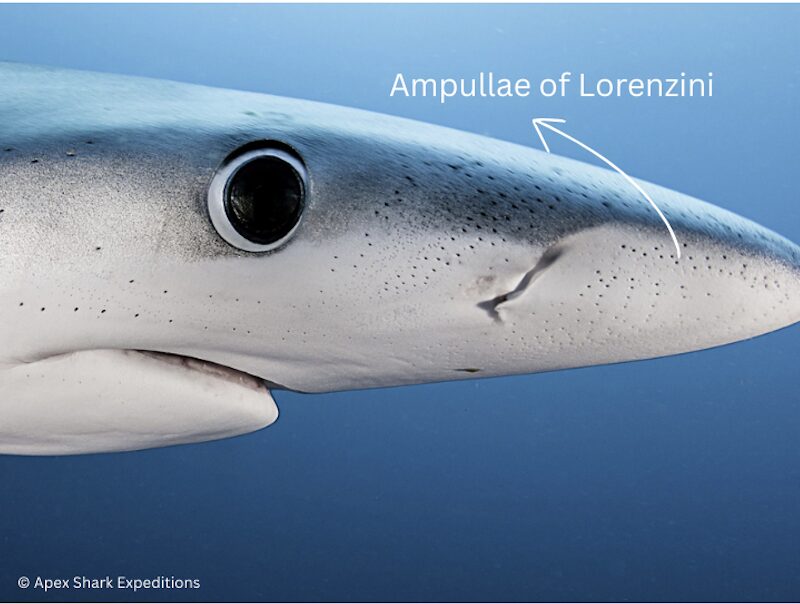 Electroreception is perhaps the most extraordinary shark sense and has no equivalent in humans. It is the detection of the tiny electric fields emitted by living animals and inanimate objects.