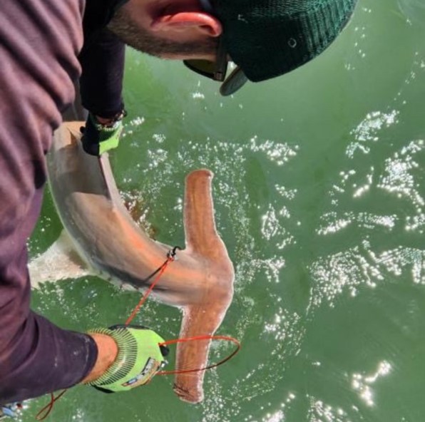 The first winghead shark we ever caught and tagged with a tracking device. This animal, amongst many others of its kind, will give us never before seen insights into their movements and habitat use. Photo © Lou Mason