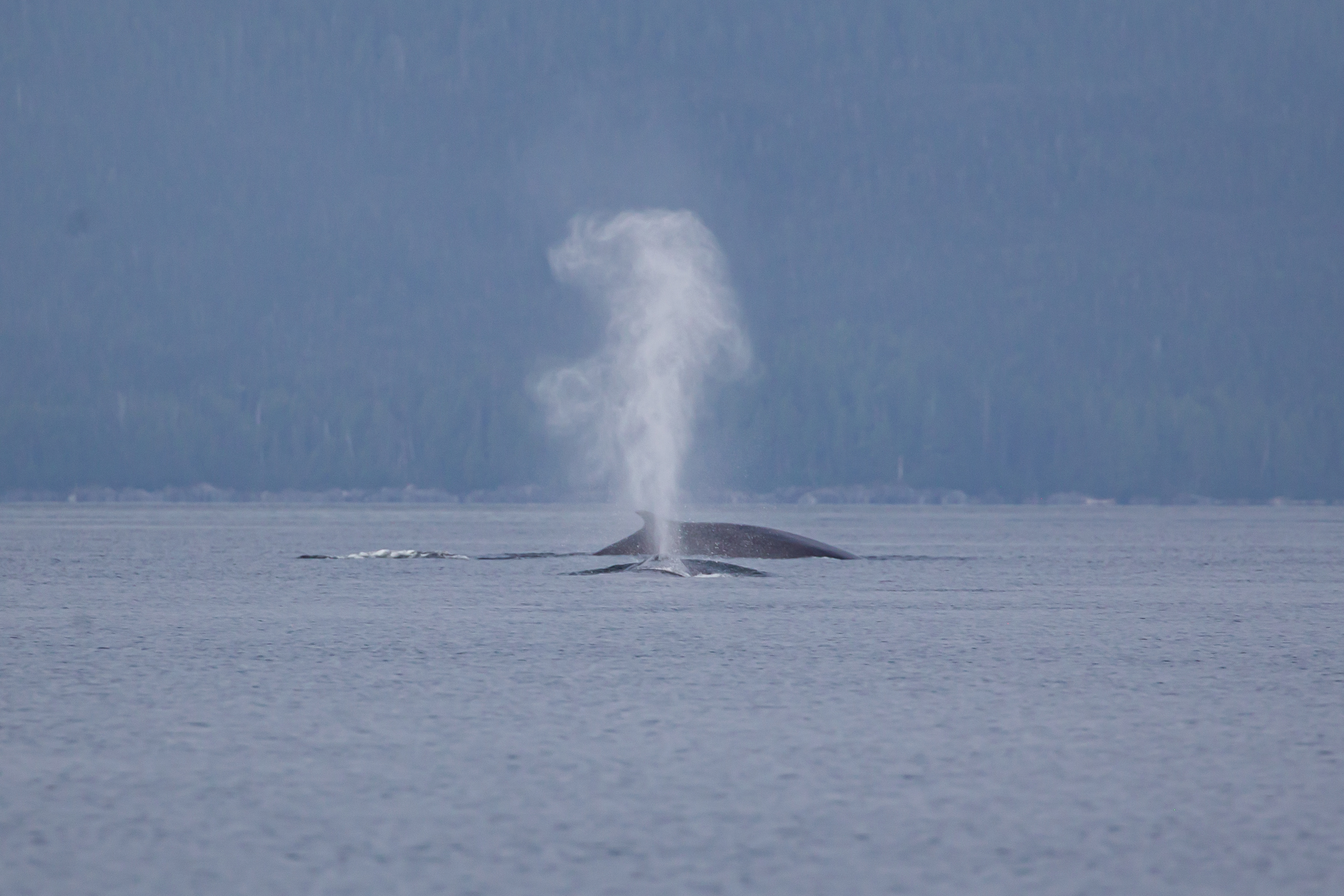 This year marks a great change to their safety in these waters. LNG super tankers have officially started transiting to and from Kitimat this summer, placing the whales who are still recovering in this region at risk of being struck and killed. Fin whales are one of the most vulnerable species to ship-strike, and this large group was directly on the tanker route for over an hour. Through good fortune, the tanker was currently docked and loading up with Liquid Natural Gas in Kitimat and did not come through at the time these fins were collectively using what is now an incredibly dangerous area. They do not know this has changed, at least not yet.