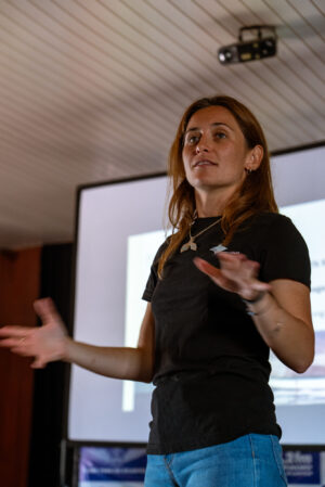 291_Guy Stevens_Alicia Gving Presentation (Manta Catalog Canary Islands) Presenting_Santa Maria, Azores_2025_Leila Scheltema-2