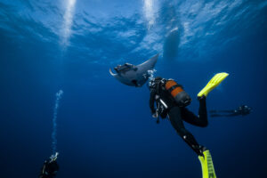 291_Guy Stevens_Alicia with Sicklefin devil rays (Mobula tarapacana)_Ambrosio, Santa Maria, Azores_2025_Leila Scheltema-13