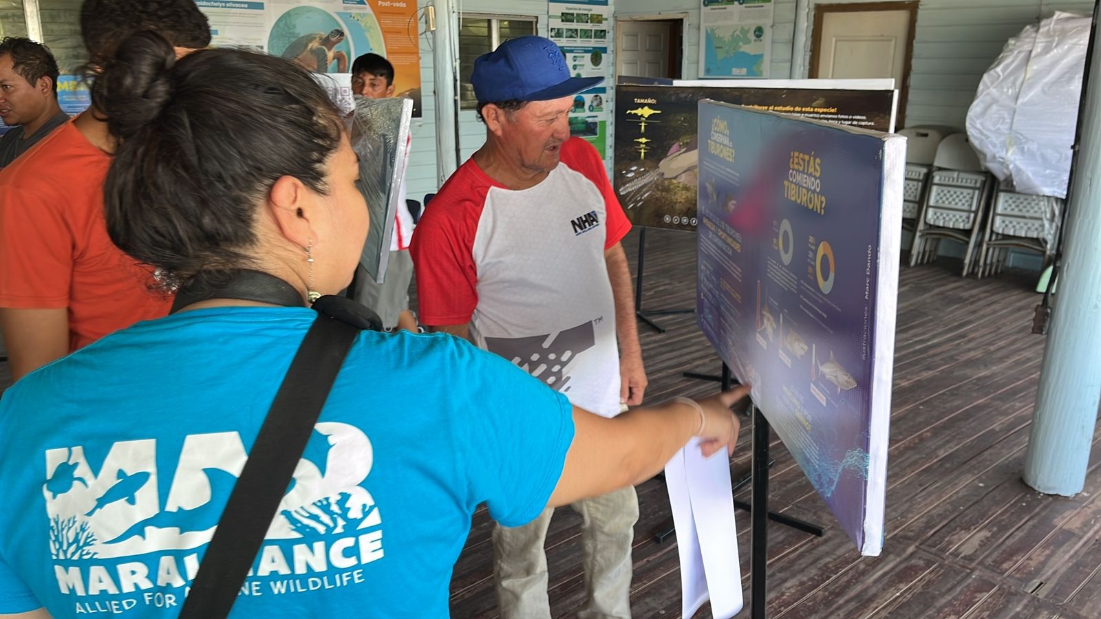 Our research officer, Sobeida Nuñez, as she leads an engaging tour of the exhibit in its third city. Photo © Digepesca
