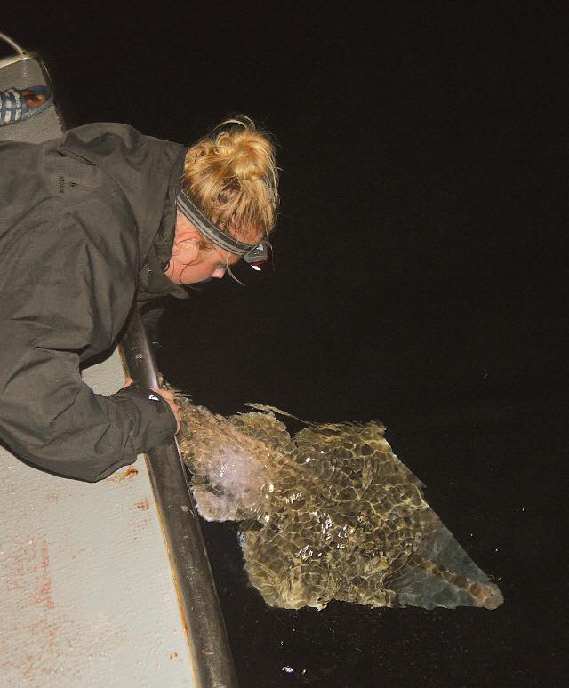 Releasing the first ever blackchin guitarfish I saw during an initial exploratory mission to scientifically validate the presence of this species in Cabo Verde, West Africa. Photo © Dr. Manuel Dureuil | Sharks of the Atlantic Research and Conservation Centre (SHARCC)