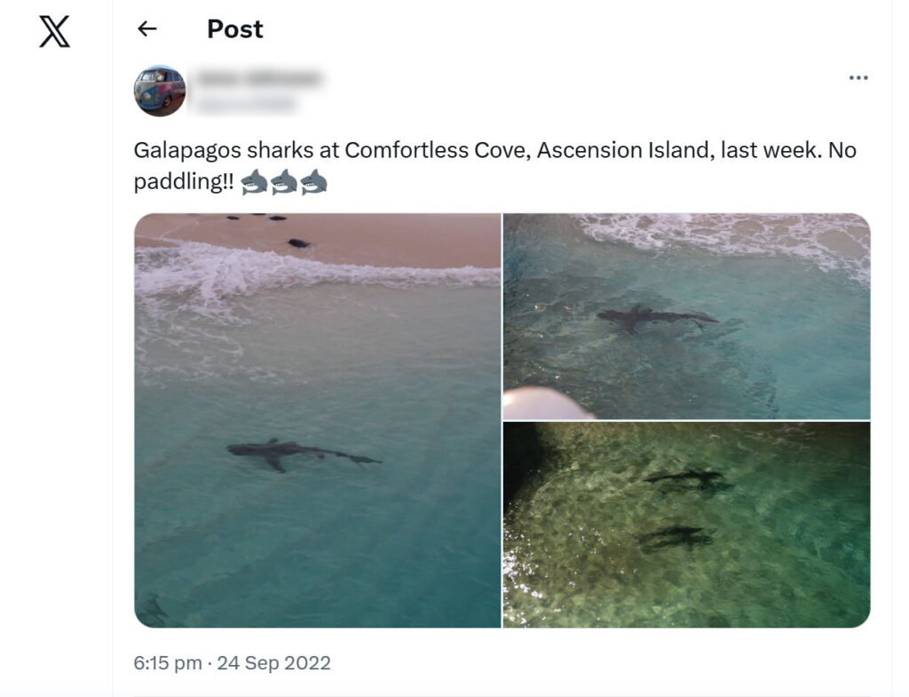 An example of social media content used to profile trends in human-shark interactions within Ascension Island’s nearshore waters. Image © Jono Johnsson.