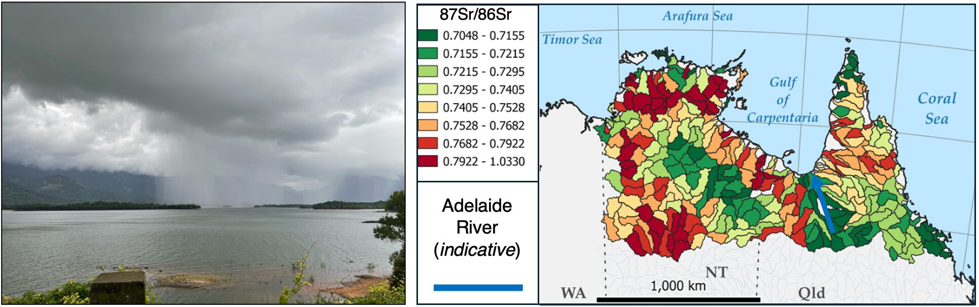 A side-by-side of Adelaide River. Photo © free commons; and isoscape. Figure © de Caritat et al. (2023)