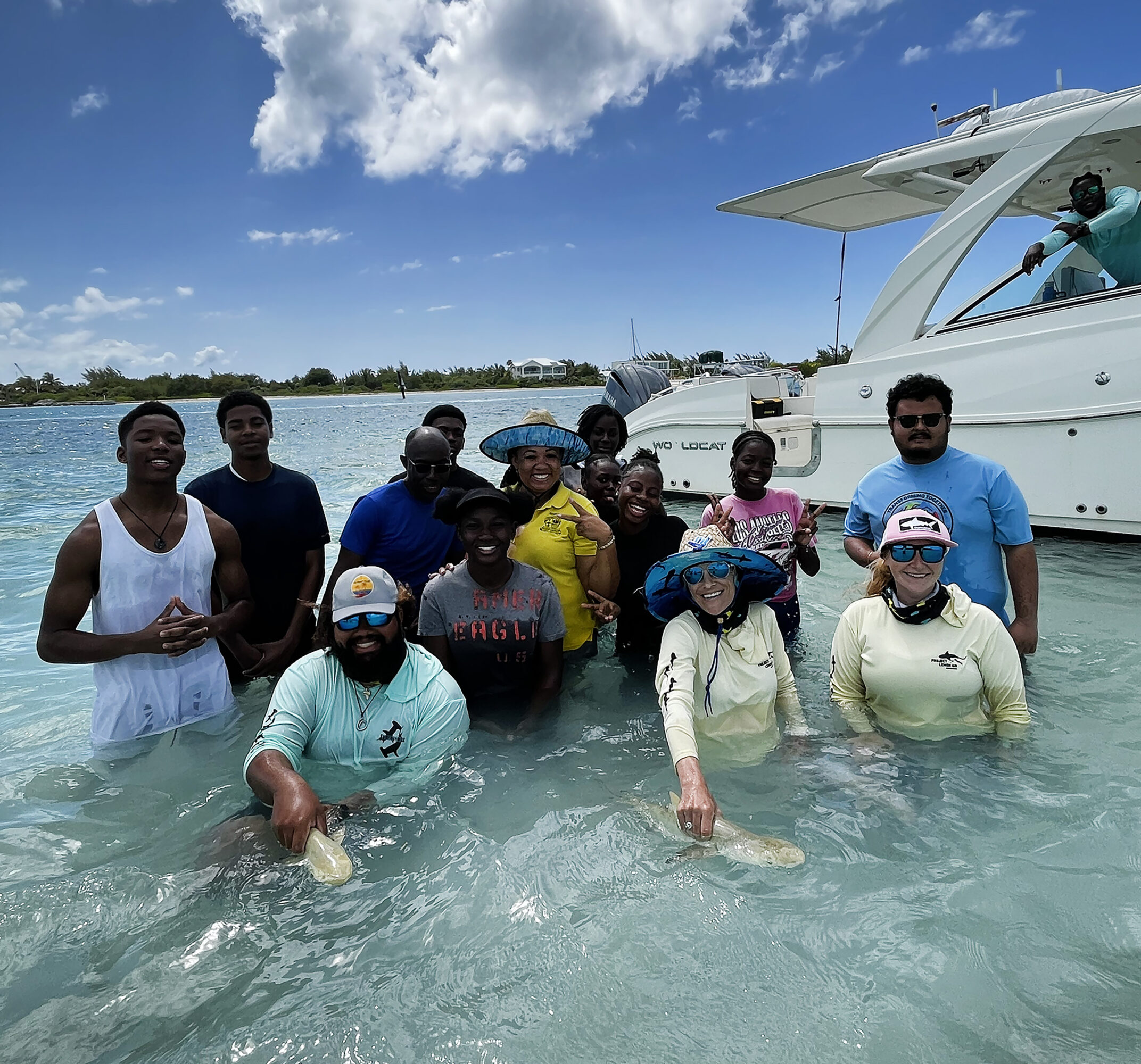 During our Project Lemon Aid 2025 field seasons in May and October, our team hosted seven student field trips. In May, we took 31 students and teachers from Clement Howell High School, British West Indies Collegiate, and A. Louise Garland High School into the field. Students learned about the importance of island ecosystems, especially mangroves, as well as shark biology, ecology, and our research methods. They helped set lines, deploy BRUVs, and collect data — gaining an authentic understanding of what marine research entails. The highlight for many was assisting with the data collection during scientific workups, where they helped measure the sharks, collect DNA samples, determine sex, and assess umbilical scar status in lemon sharks.